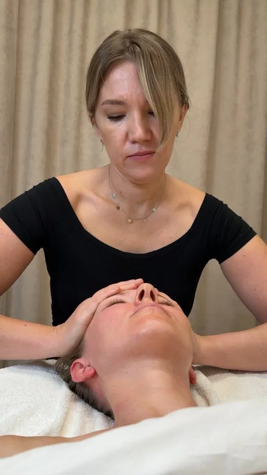 Natural face & body treatments — including buccal massage, facials, Endospheres therapy, and lymphatic drainage for lift and radiance.